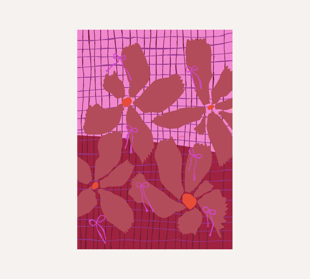 When the sun drifts away, small flowers bloom across the pink and red sky.