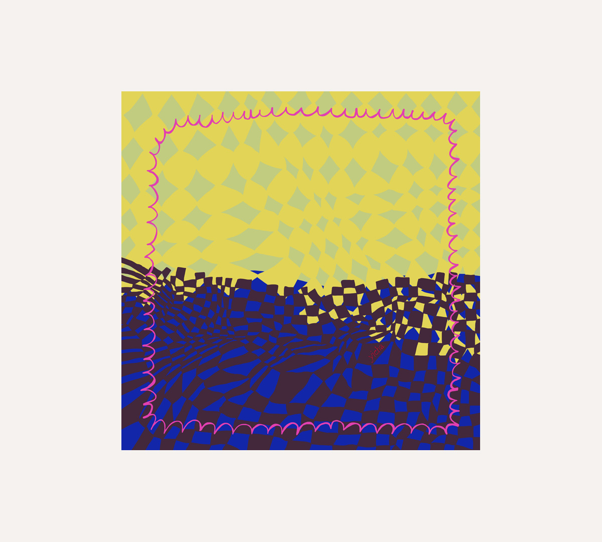 Two worlds begin to converge, forming a single universe. The synthesis of yellow and blue symbolizes light and dark, day and night, or perhaps the inside and the outside. The interpretation is yours to choose.