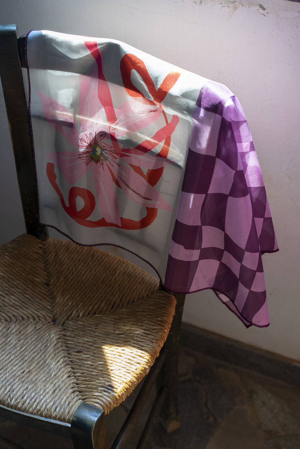 Dinner is the name of this scarf, inspired by the cherished motifs of our favorite tablecloths.