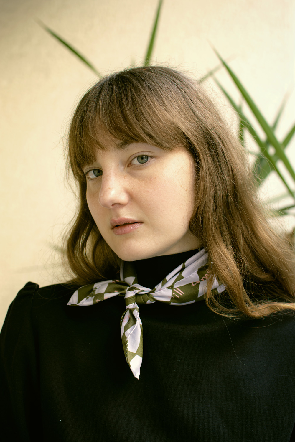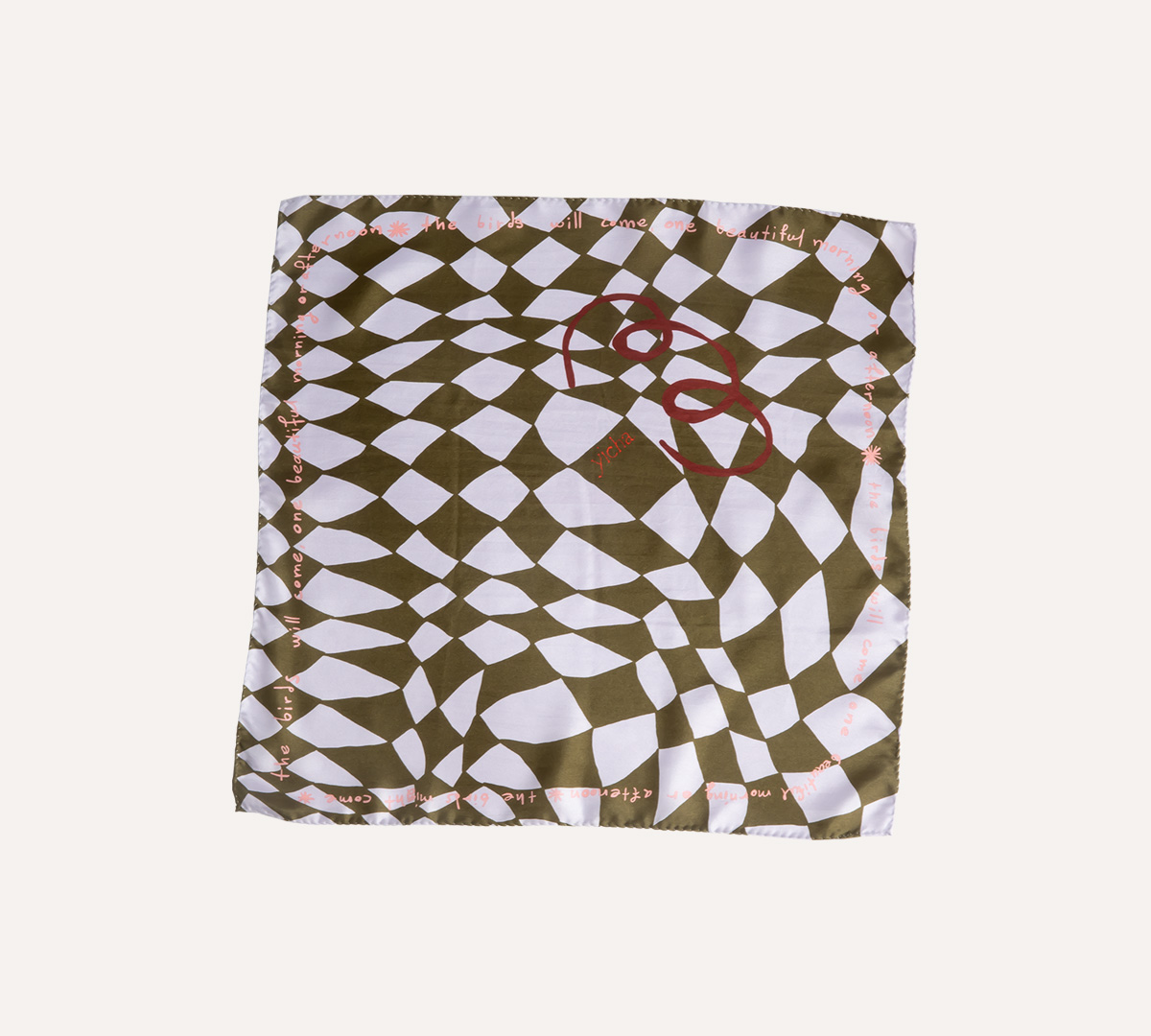 Baby blue and khaki come together in this playful bandana, inspired by circus motifs and childhood memories. A unique design full of whimsy and charm.